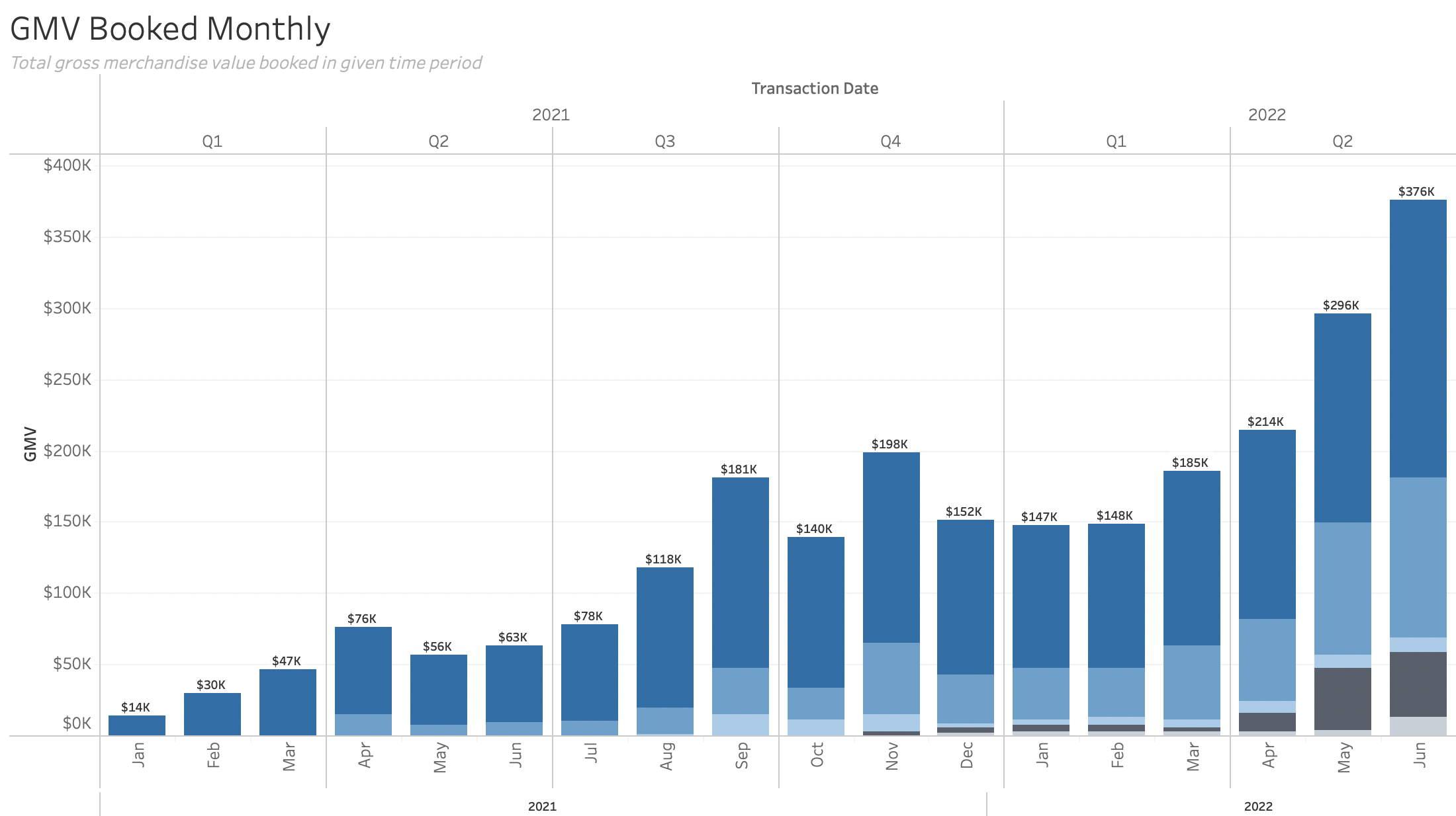 - Monthly GMV / Revenue: $185,975 -> $375,971 (+102.2%)
